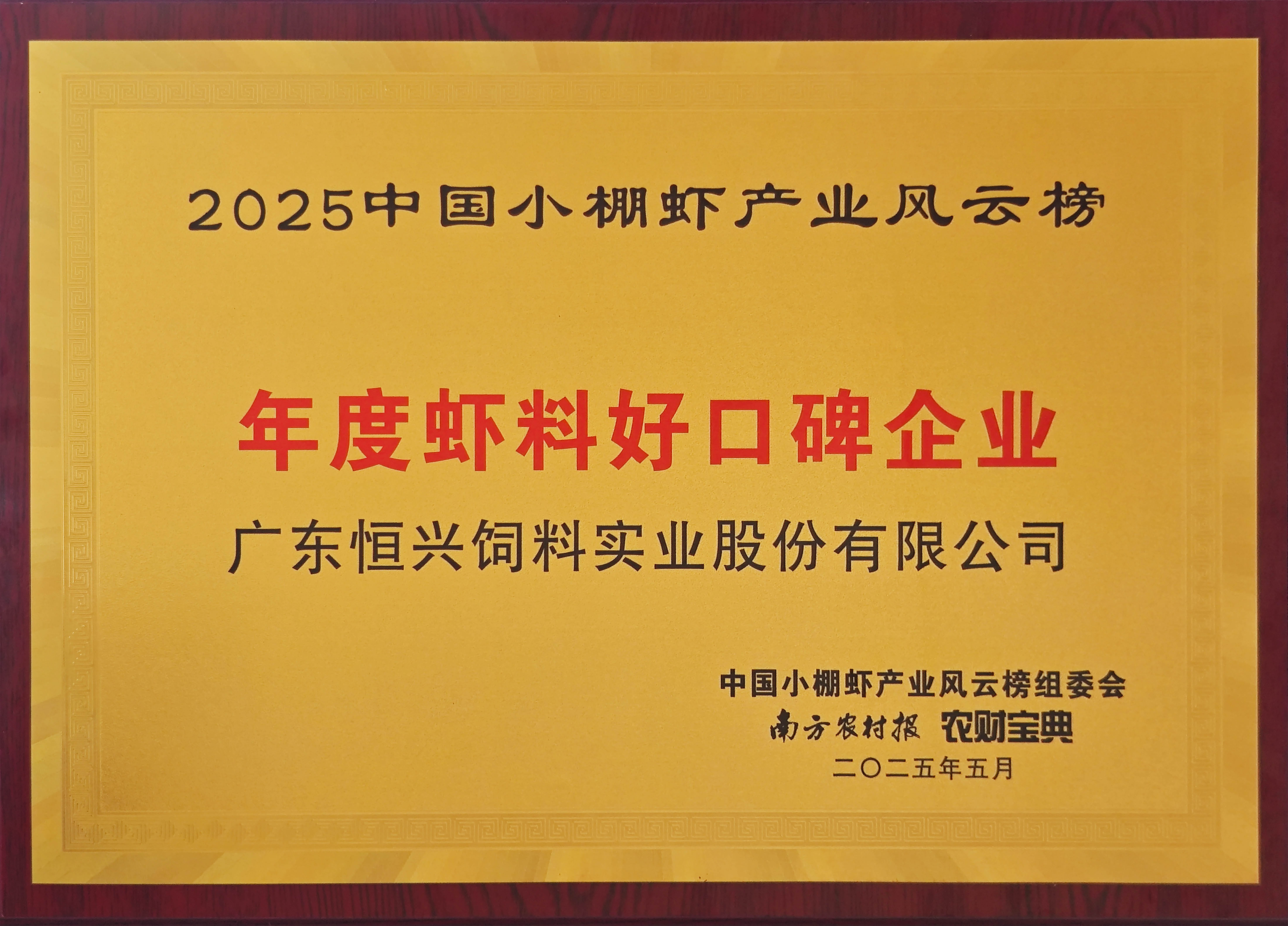 活動(dòng)當(dāng)天,“廣東鄉(xiāng)村振興對(duì)蝦產(chǎn)業(yè)服務(wù)中心”正式啟動(dòng),30余家產(chǎn)業(yè)鏈龍頭企業(yè)入駐,合力打造年產(chǎn)值超30億元的小棚蝦產(chǎn)業(yè)生態(tài)圈。恒興當(dāng)選廣東鄉(xiāng)村振興對(duì)蝦產(chǎn)業(yè)服務(wù)中心副理事單位,恒興副總裁胡志鋒當(dāng)選中心副理事長。同期舉辦的2025中國小棚蝦產(chǎn)業(yè)風(fēng)云榜頒獎(jiǎng)典禮中,恒興榮膺“年度蝦料好口碑企業(yè)”。